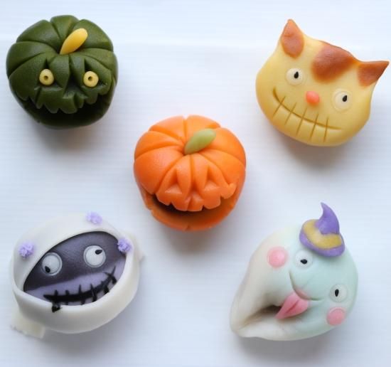 かぼちゃのランタンやかわいいお化け、もう一種類は画像後ろにある手毬の上生菓子です。