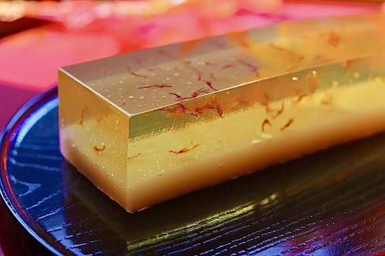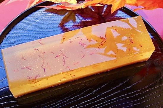山形県産の紅花をあしらい、透き通る錦玉とやさしい白羊羹を二層に仕立てました。
